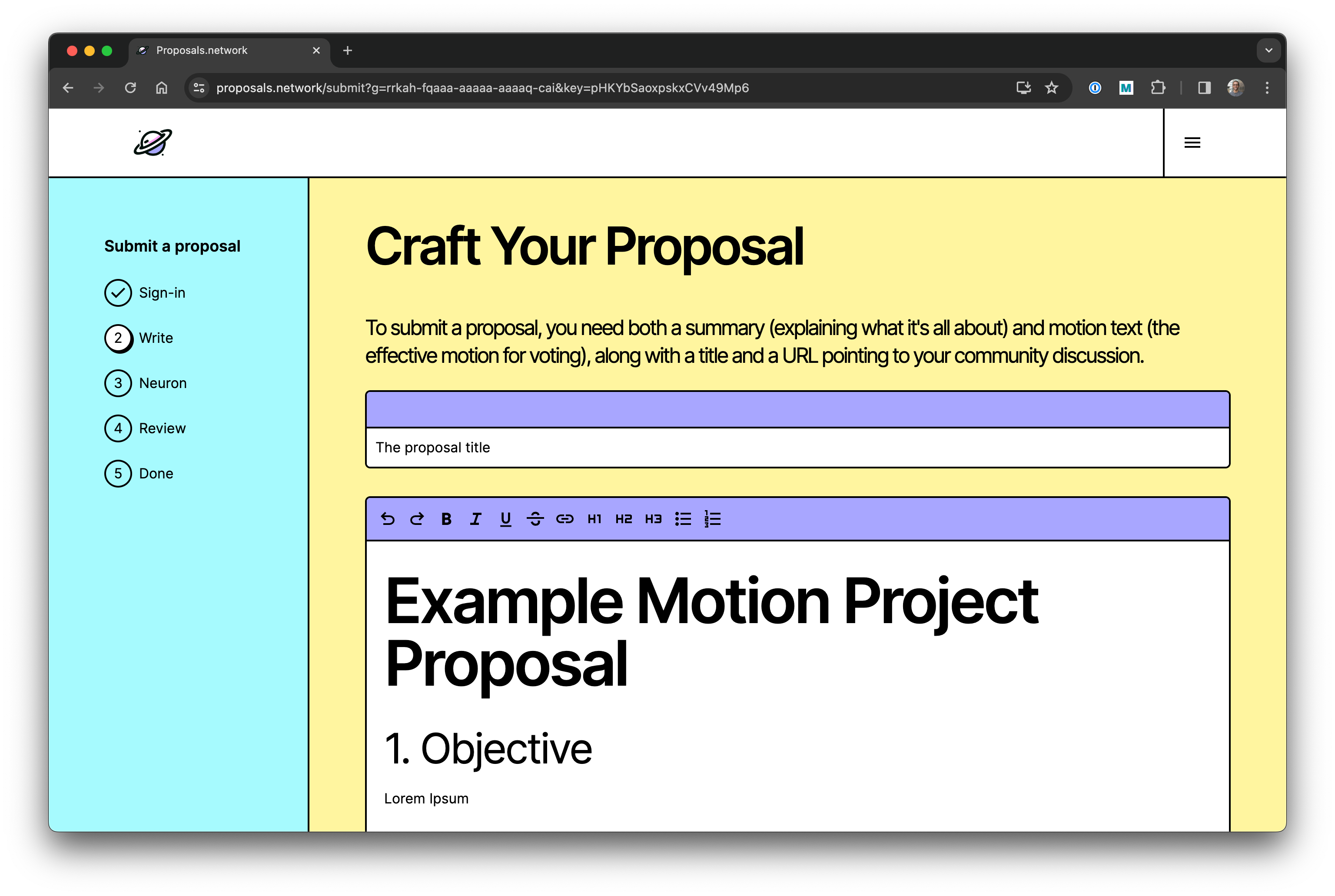 Given the limitation mentioned above, the absence of a dapp that allows for submitting proposals for Snses through a UI, and the fact that dogfooding Juno is always beneficial, I decided to create proposals.network.