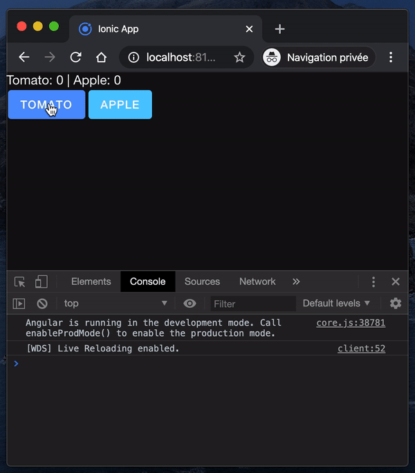 <ion-button (click)="incApple()" color="secondary">Apple</ion-button>