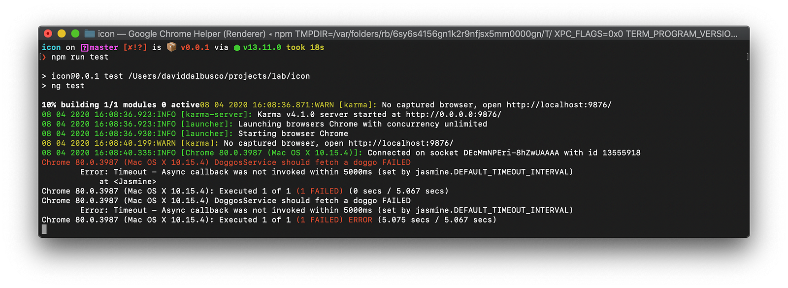 });Because we are performing an HTTP request and are not mocking it, the test fails on a timeout. That’s why our goal will be to solve this issue while mocking the private function which takes care of performing the request.
