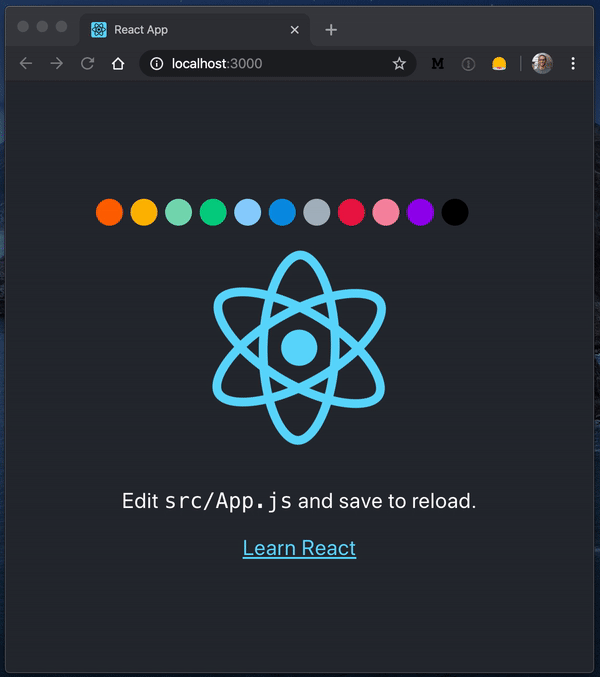 }Voilà, isn’t that a cleaner code and pretty cool? And of course, if we redo our test, it should still work out, we should still be able to select a color and apply it to the background of the React logo 😸.