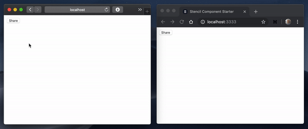 Safari (left) supports Web Share API, Chrome (desktop, right) doesn’t support it and fallback to the Web Component “Web Social Share”