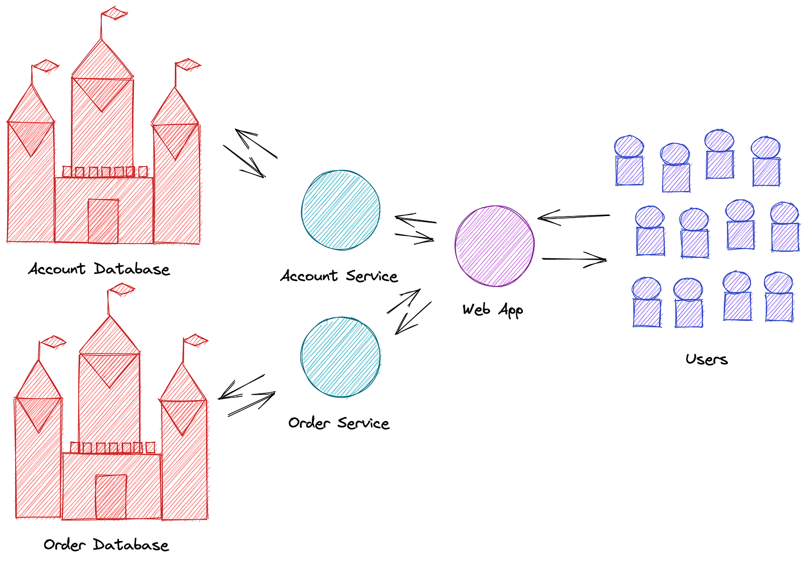 Users use the (web) application. It calls a dedicated service which in turn calls endpoint(s) to persist and read data and, returns the results to the users.