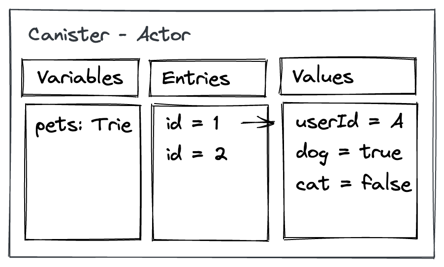 private stable var pets : Trie.Trie<PetId, Data> = Trie.empty();