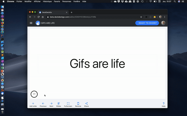 Moreover, more than being able to develop slides with our editor, we also thought that adding some handy features would make the user experience a bit more enjoyable.