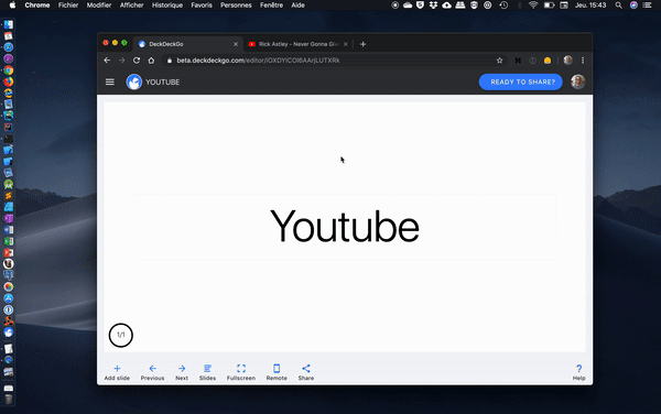 I was a bit more lazy on the integration of Youtube videos, we didn’t interconnected any API, but still, it’s pretty damn easy to add any videos from that source to your deck. Cherry on top, you could start and pause the videos remotely with our app too.
